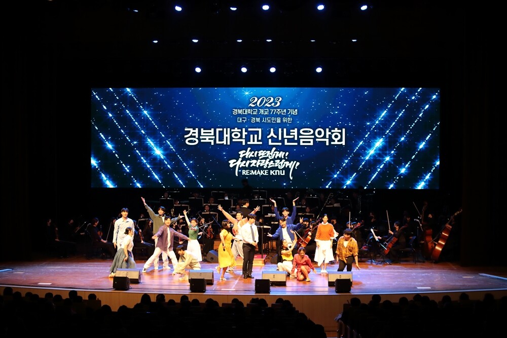 ‘다시 뜨겁게! 다시 자랑스럽게! RE;MAKE KNU’를 주제로 열린 이번 신년음악회는 뮤지컬 시카고, 레미제라블 등의 주역을 맡은 뮤지컬 배우 남경주와 뮤지컬 지킬 앤 하이드, 아이다, 시카고 등에서 열연한 뮤지컬 배우 윤공주를 비롯해 테너 서영철, 뮤지컬 배우 박혜민과 장홍석, 재즈보컬 벨라제이 등이 출연했다.