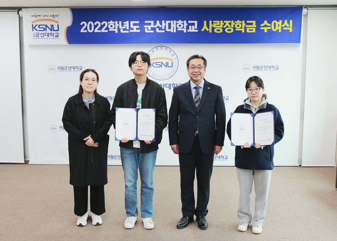 [대학저널 온종림 기자]군산대학교는 24일 총장접견실에서 2022학년도 사랑장학금 전달식을 갖고 우수 학생에게 장학금을 전달했다.