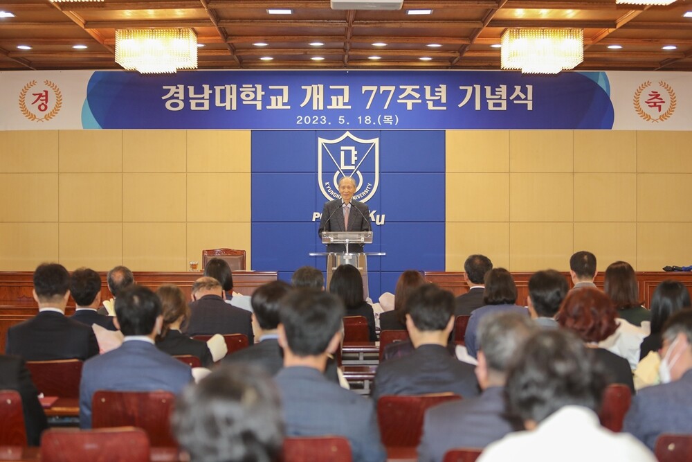 박 총장은 기념사를 통해 “경남대 개교 77주년을 축하해주신 15만 한마 가족 모두에게 깊은 감사의 마음을 전한다"고 말했다.