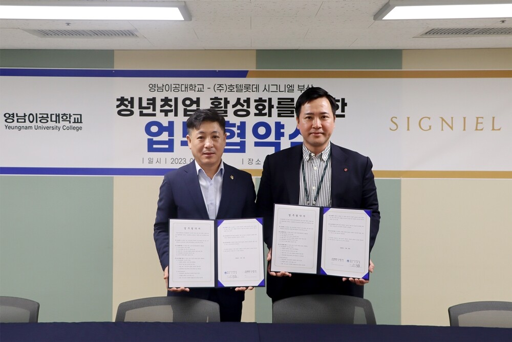 [대학저널 온종림 기자] 영남이공대학교는 호텔롯데 시그니엘 부산과 청년취업 활성화를 위한 업무협약을 체결했다고 26일 밝혔다.