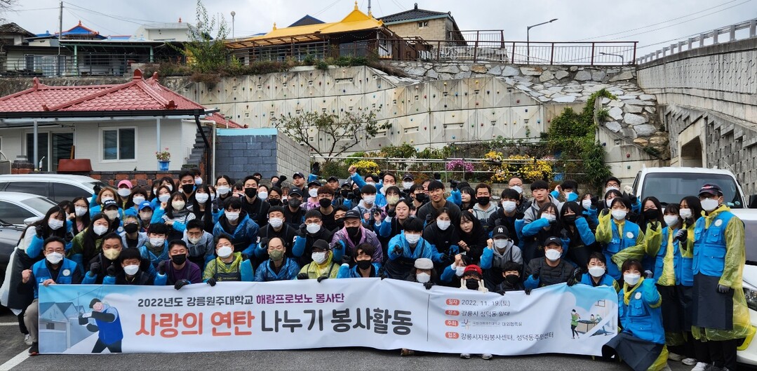 강릉원주대는 매년 지역 내 취약계층에 건강꾸러미 나눔, 김장김치 나눔, 재능기부, 사랑의 연탄 나누기 등 다양한 봉사활동을 통해 지역사랑 나눔활동을 실천하고 있다.