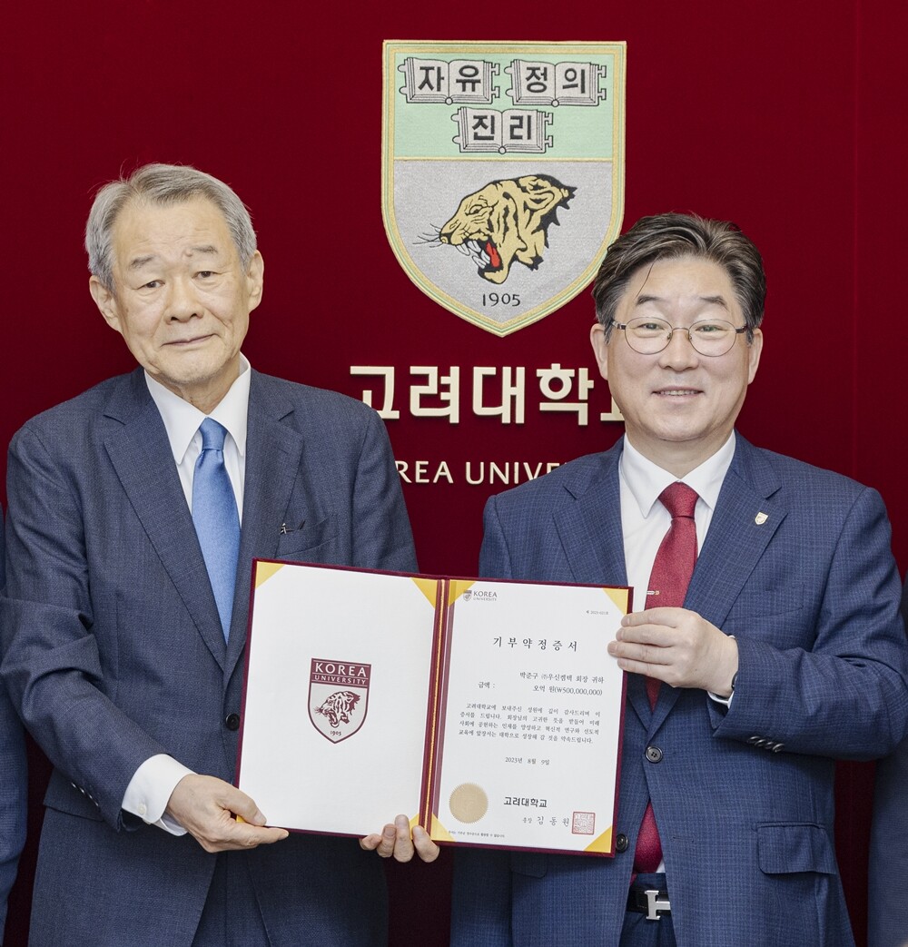 [대학저널 온종림 기자] 박준구 ㈜우신켐텍 회장(철학과 62)이 9일 고려대학교 문과대학 발전기금 4억 5천만 원과 철학연구소 연구기금 5천만 원 등 모두 5억 원을 쾌척했다.