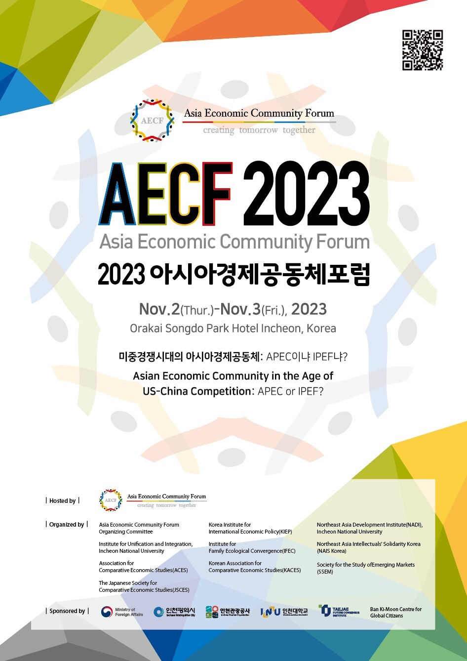 지난 2009년 인천의 송도지역이 경제자유구역으로 지정되고 국제도시로 본격 개발되는 것을 계기로 인천을 아시아의 중심도시 및 ‘아시아의 브뤼셀 만들자’는 비전을 가지고 출범한 아시아경제공동체포럼은 올해 15회를 맞이한다. 15년 전인 2008년 설립된 외교부 산하 비영리법인인 아시아경제공동체재단(이사장 인천대 박제훈 교수)이 그간 포럼을 개최해 왔다.