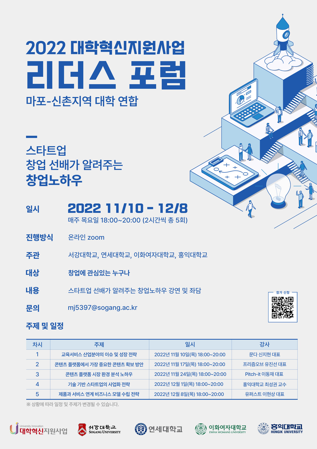 참여 신청과 관련 문의는 서강대 대학혁신지원사업단으로 하면 된다.