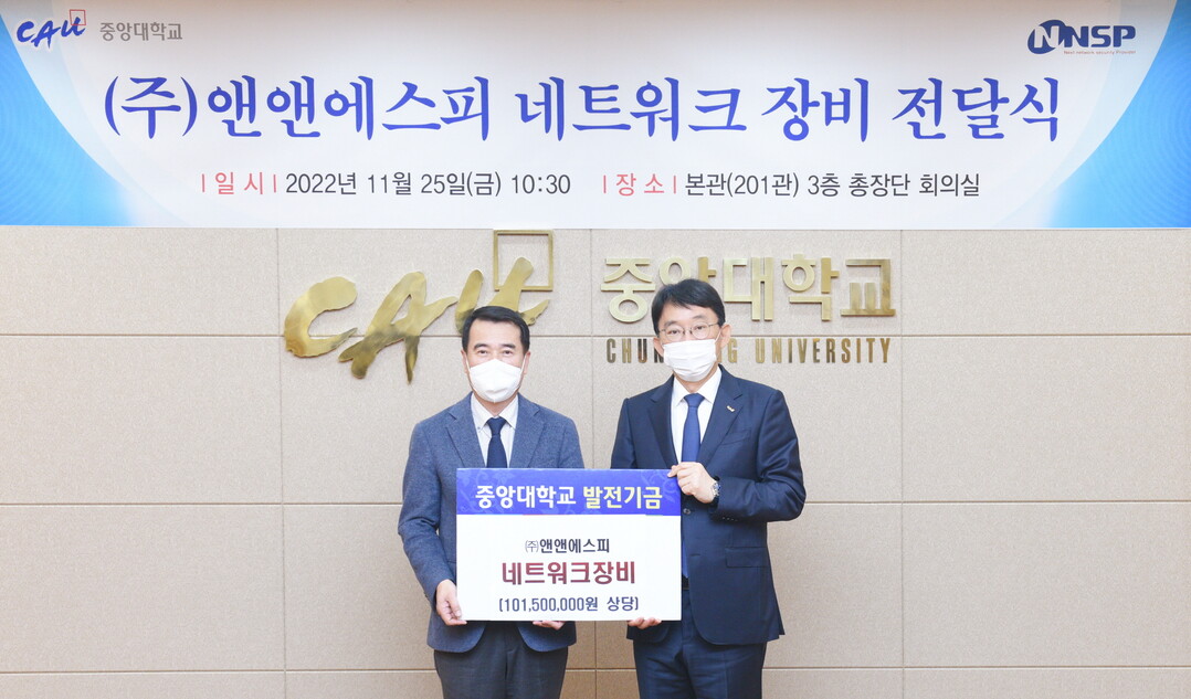 [대학저널 오혜민 기자]중앙대학교는 스마트 산업보안 기업 앤앤에스피의 김일용 대표가 1억원150만원 상당의 네트워크 장비를 기부했다고 30일 밝혔다.