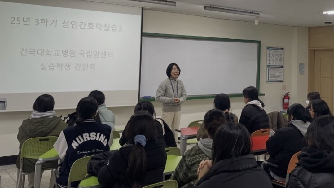 성인간호학실습 담당 교수인 송인자 교수는 “이번 학생 간담회는 교과목 운영에 대한 강점과 요구사항, 자기 성찰 등의 내용으로 진행됐다”며 “이를 통해 학생들이 실제 임상 현장에서 요구되는 기본 소양과 실습 절차에 대한 중요성을 인식하고, 원거리 우수기관 실습을 통해 현장 적응력을 높일 수 있을 것으로 기대한다”고 밝혔다.