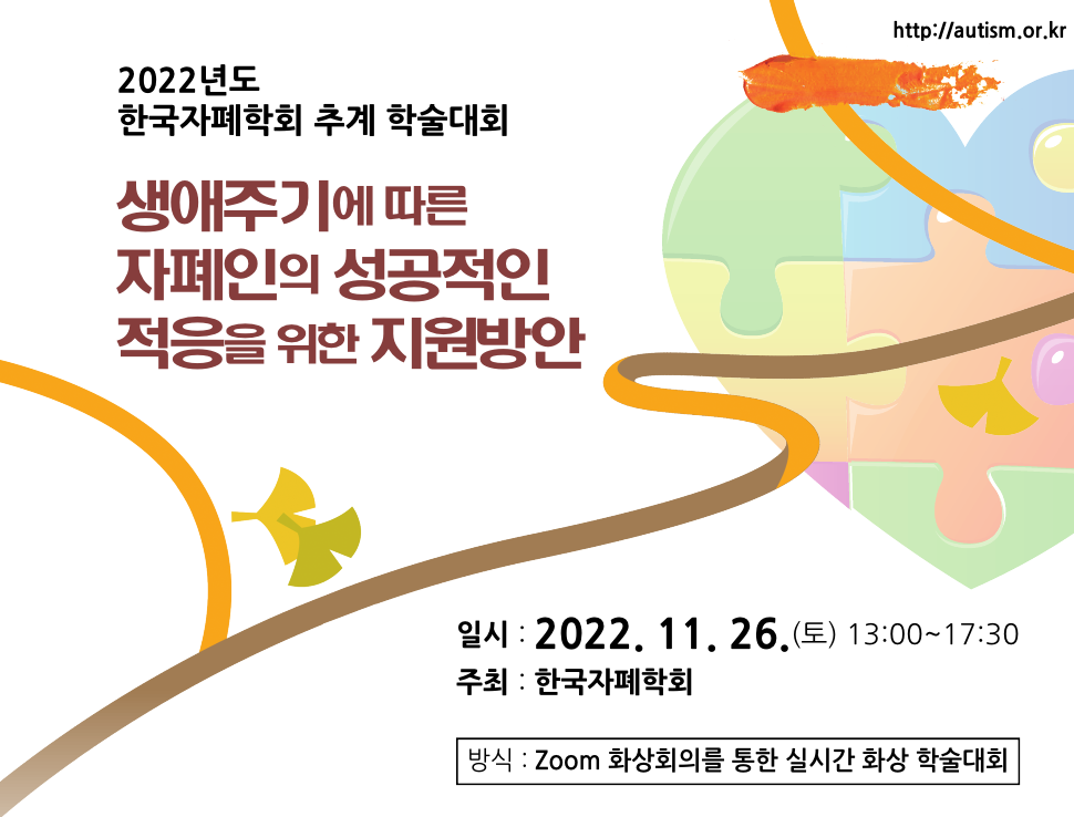 이번 학술대회는 ‘생애주기에 따른 자폐인의 성공적인 적응을 위한 지원방안’이라는 주제로, 다학제 전문가가 자폐인의 생애주기에 따른 지원 관련 연구내용을 실시간 화상회의를 통해 발표하고 토론한다.