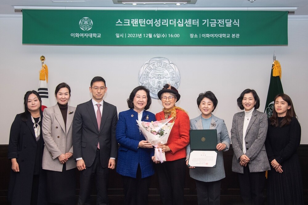 이화여대는 지난 6일 기금전달식을 열고 감사 인사를 전했다. 스크랜턴여성리더십센터 박정해 이사장은 “재단 설립 100주년을 맞이한 해에 스크랜턴여성리더십센터의 취지와 가장 맞닿아 있는 이화여대에 장학금을 기부할 수 있어 의미가 깊다”라며 “단순한 장학금 수여를 넘어 ‘여성 리더십’에 대한 가치를 공유하는 일이 되기를 바라며, 장학생 한 사람과 그의 가정, 각 나라에까지 영향을 미칠 리더십을 기르게 되기를 바란다”고 당부했다.