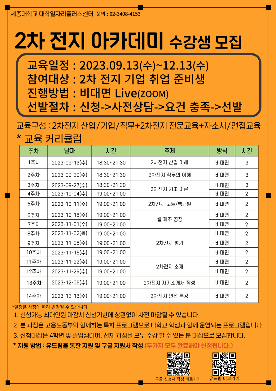 자세한 내용은 세종대 대학일자리플러스센터로 문의하면 된다.