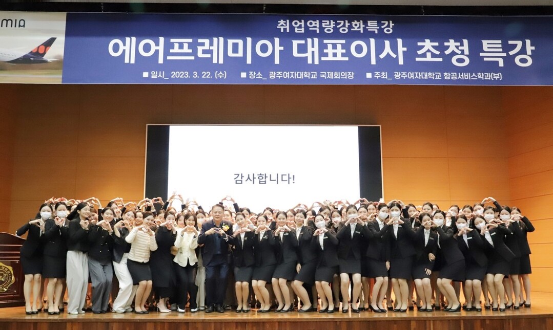 [대학저널 문차영 기자] 광주여자대학교는 항공서비스학과가 최근 HSC항공사 에어프레미아 대표이사를 초청해 특강을 했다고 27일 밝혔다.