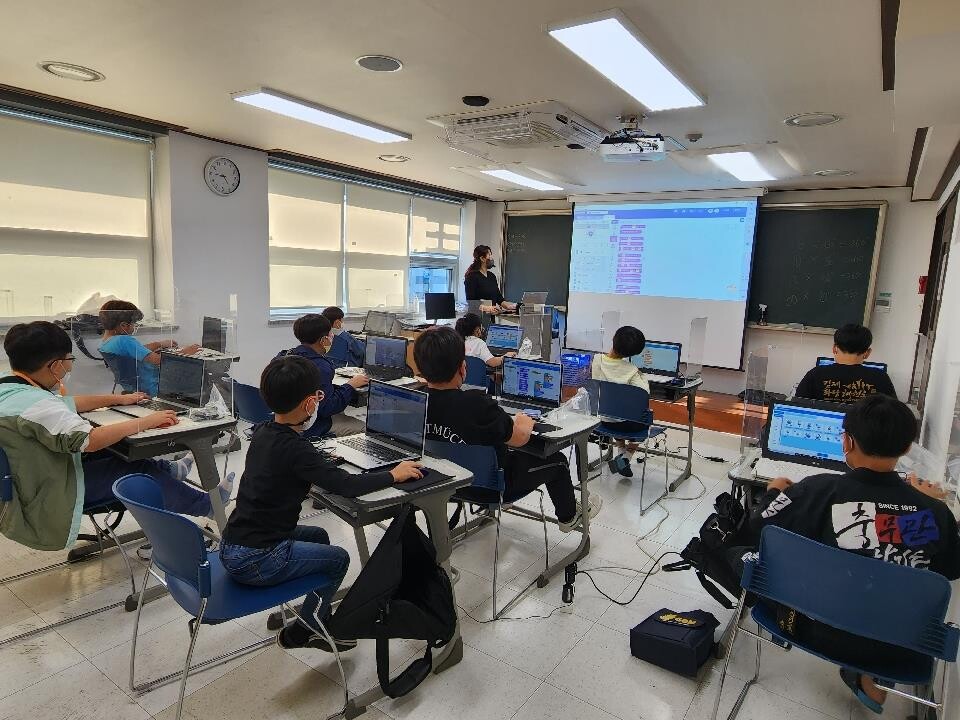 군산대 새만금창의융합센터 생활과학교실 수업 장면. 사진=군산대 제공 |