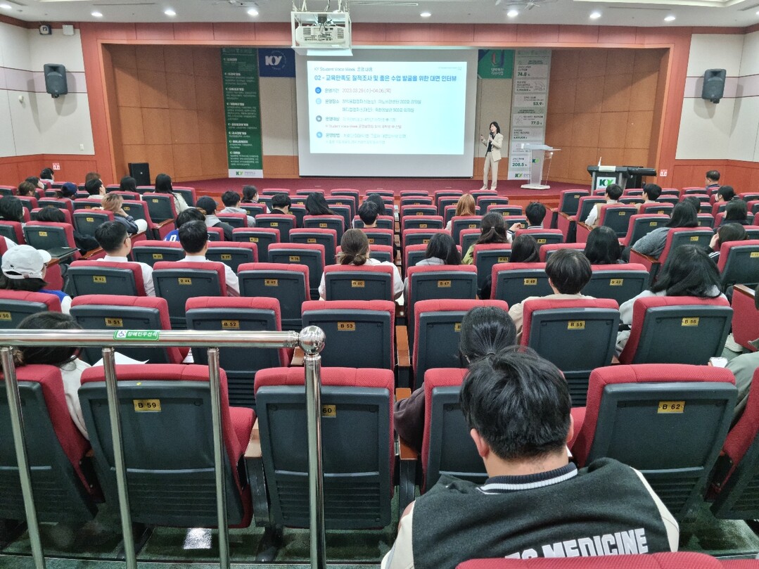[대학저널 온종림 기자] 건양대학교 교육혁신원 교육성과관리센터가 학생들이 학업 중 겪는 불편함과 교육내용 및 교육환경 개선사항 등을 청취하는 ‘KY Student Voice Week’ 프로그램을 지난 27일부터 오는 4월 7일까지 진행운영하고 있다.