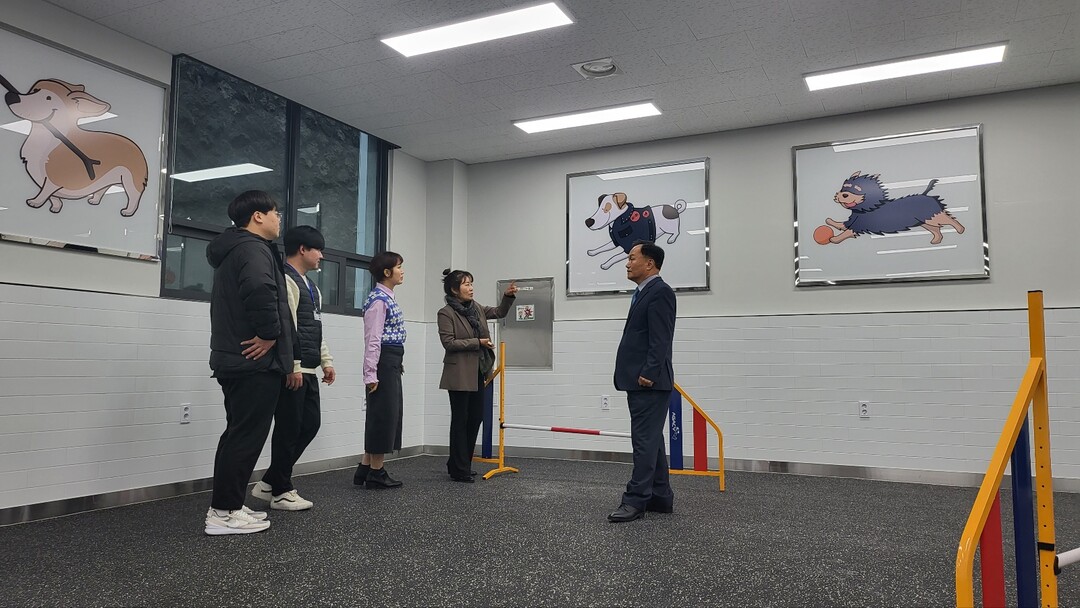 | 동명대 관계자들이 개관한 반려동문교육문화센터에서 실습 공간을 둘러보고 있다. 사진=동명대 제공 |