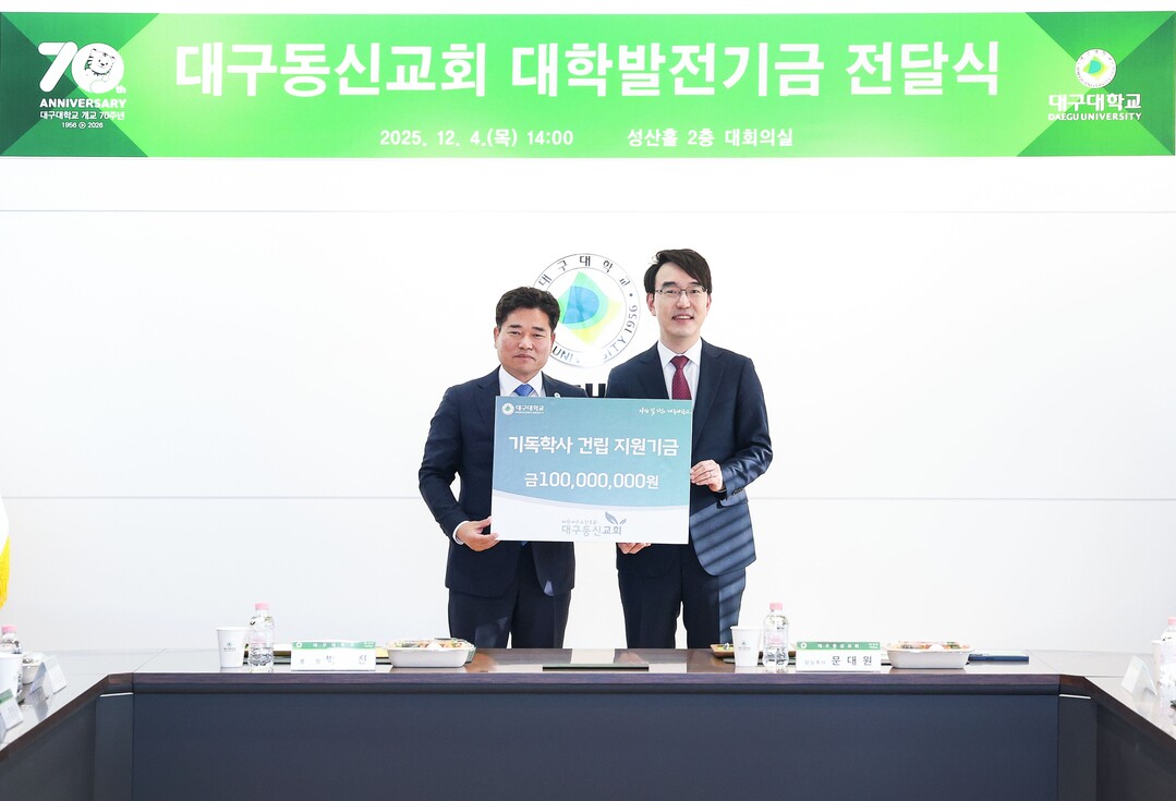 [대학저널 이선용 기자] 대구대학교 내 기독학사 건립을 위한 지역 교회의 따뜻한 성원이 이어지고 있다. 대구대와 지역 교회는 신앙과 교육이라는 공통의 가치를 바탕으로 협력하며 미래 세대를 위한 신앙 공동체 조성에 뜻을 모았다.