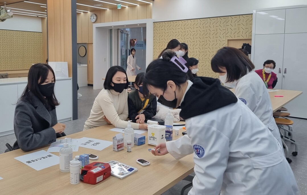 계명대 간호대학 관계자들이 지역의 다문화가족들의 건강관리를 위해 마련한 '다문화가족 Health Fair'에서 지역 다문화 가족들을 대상으로 건강 관련 검사 등을 실시하고 있다. 사진=계명대 제공 |