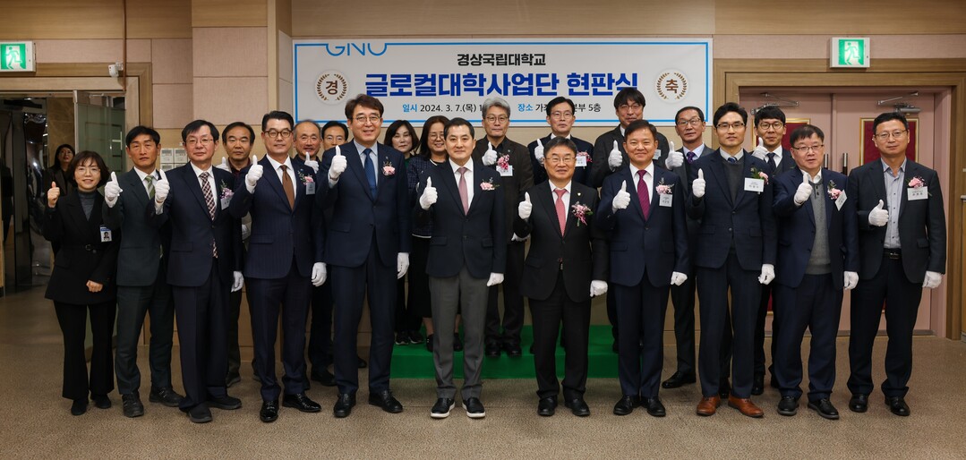 [대학저널 이선용 기자] 경상국립대학교가 7일 오전 11시 가좌캠퍼스 대학본관 5층에서 ‘글로컬대학사업단 현판식’을 개최했다.