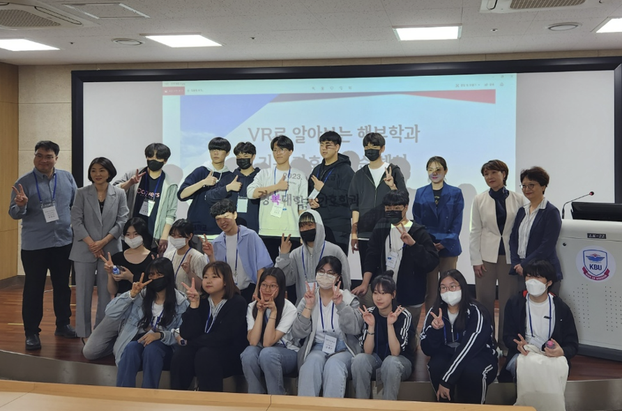 경복대 간호대학 학생들과 경기 하남시 남한고 학생들이 간호학과가 실시한 ‘2023 진로체험 프로그램’이 끝난 후 기념촬영하고 있다. 사진=경복대 제공 |