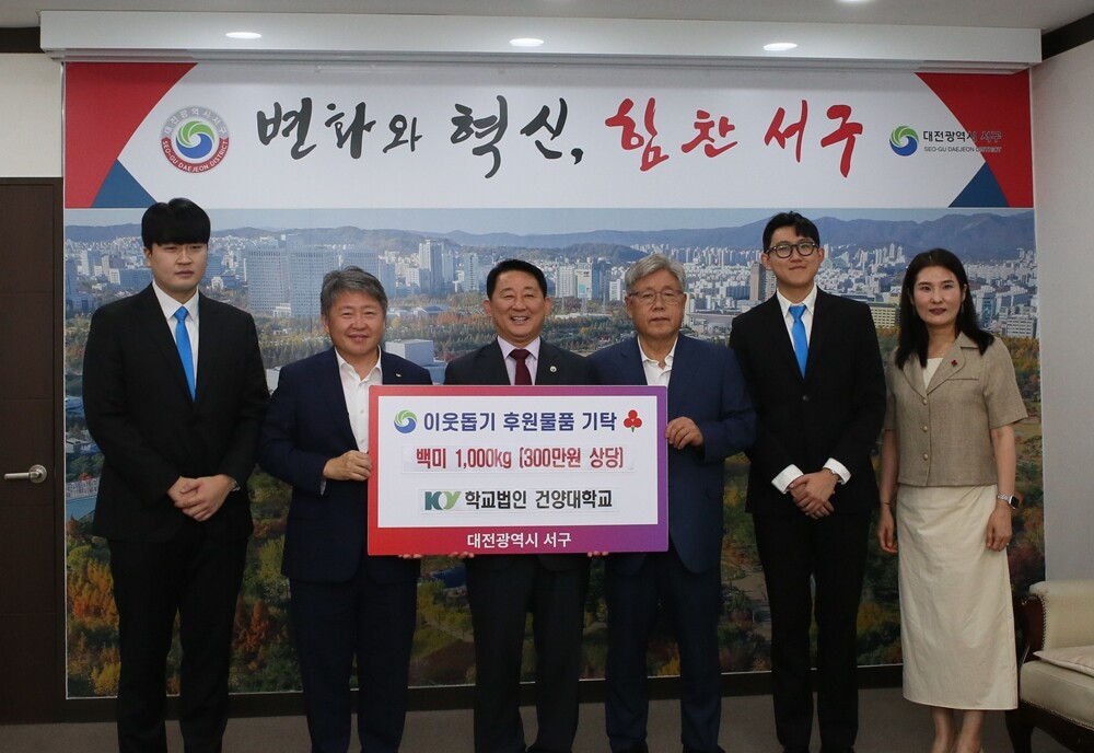 [대학저널 온종림 기자] 건양대학교와 건양대 제27대 총학생회 비상이 지난 13일 대전 서구에 쌀 1000kg(300만원 상당)을 기탁했다.