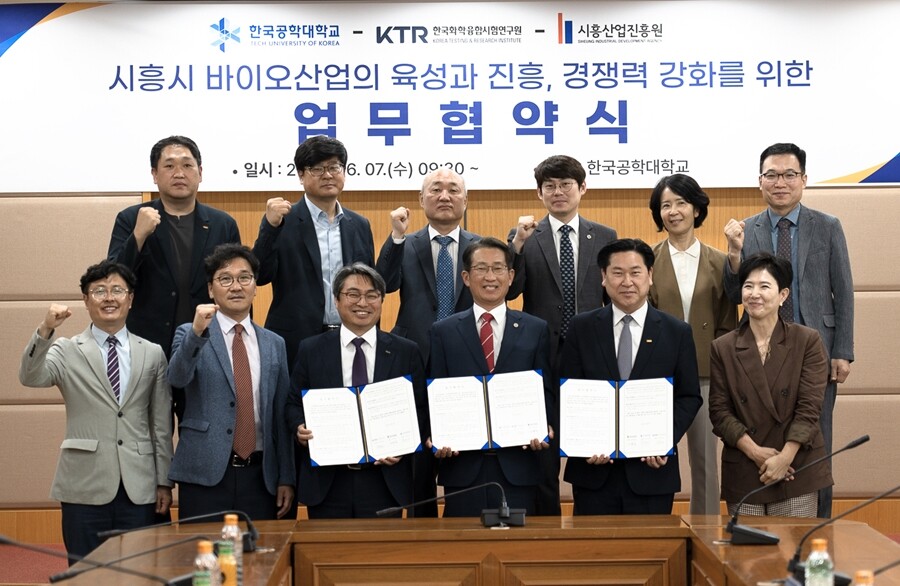[대학저널 온종림 기자] 한국공학대학교는 7일 KTR한국화학융합시험연구원 및 시흥산업진흥원과 시흥시 바이오산업의 육성과 진흥, 경쟁력 강화를 위한 업무협약을 체결했다.