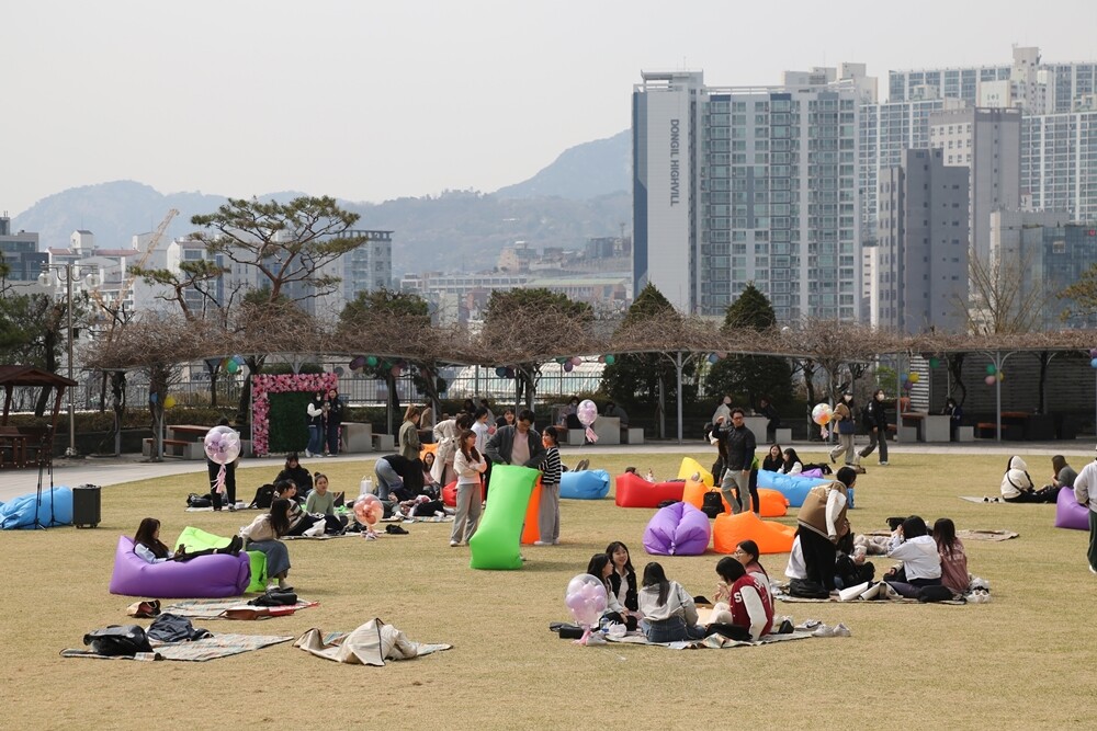 성신여대 수정캠퍼스는 ‘성신을 따라가 봄’ 축제를 28일, 29일 이틀간 열었다. 축제 기간 교내 버스킹, 잔디밭에서 열리는 요가 레슨, 캠퍼스 내 보물찾기 등 학생들이 다양하게 즐길 수 있는 프로그램을 운영했다. 아울러 캠퍼스 내 활짝 핀 벚꽃을 배경으로 즉석 사진을 찍어주는 이벤트도 진행했다.