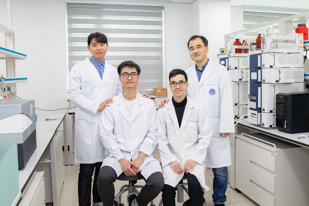 왼쪽부터 김정환 교수, 레응옥두이(Le Ngoc Duy, ACS Nano 제1저자), 응웬바오록(Nguyen Bao Loc, Nano Today 제1저자) 학생, 김종오 교수. |