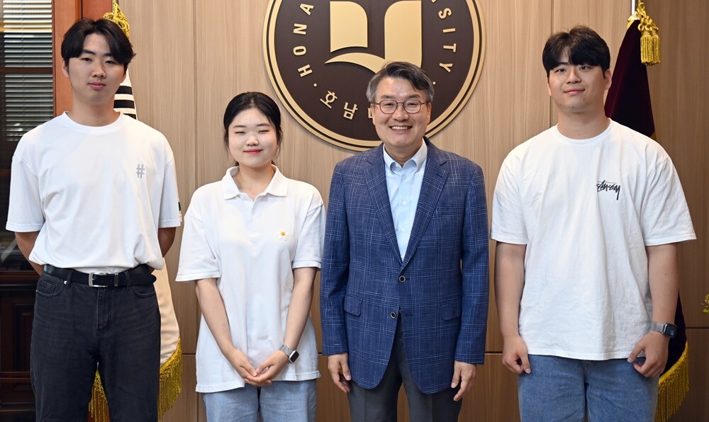 [대학저널 온종림 기자] 박상철 호남대학교 총장은 22일 심정지 상태로 쓰러진 버스 승객을 신속한 심폐소생술(CPR)로 살린 사회경영대학 중국어학과 이준하(3학년), 보건과학대학 응급구조학과 정주현(3학년), 문화예술체육대학 스포츠레저학과 이명학(3학년) 학생 3명에게 장학금을 전달하고 격려했다.