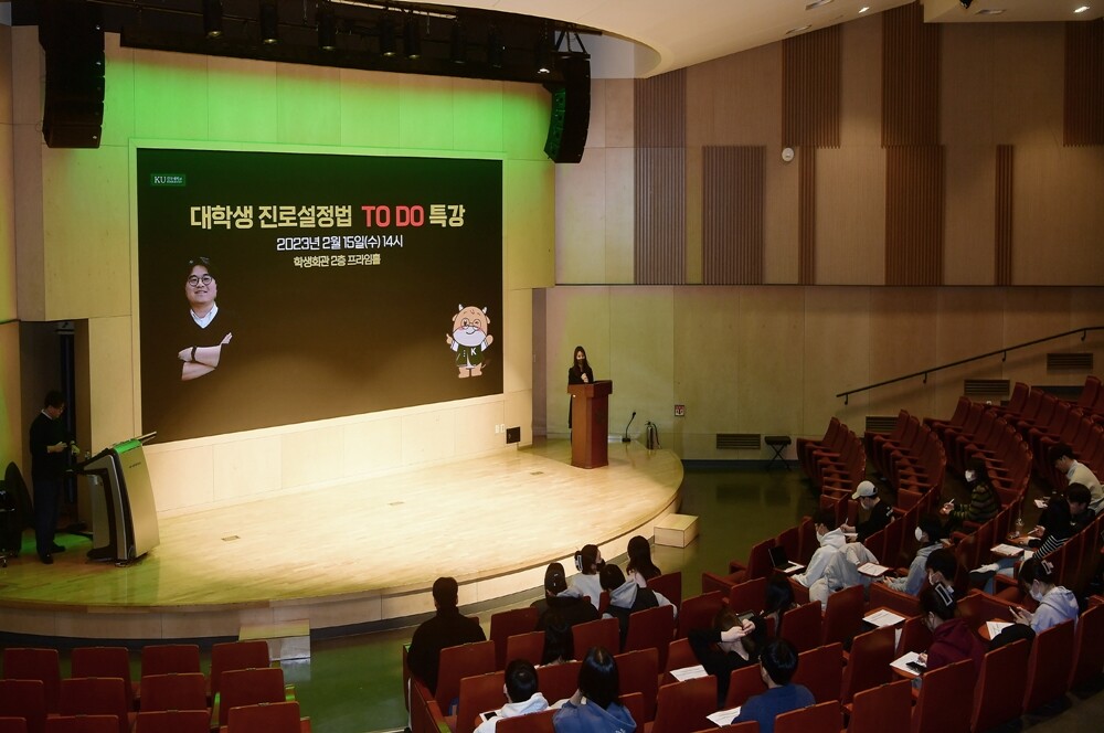 [대학저널 온종림 기자] 건국대학교 진로취업센터가 지난 15일 학생회관 프라임홀에서 서강대 최성욱 차장을 초청해 학생 및 교직원을 대상으로 각각의 진로 고민 해결을 위한 ‘KUCC(KU Career Center)’ 특강을 개최했다.