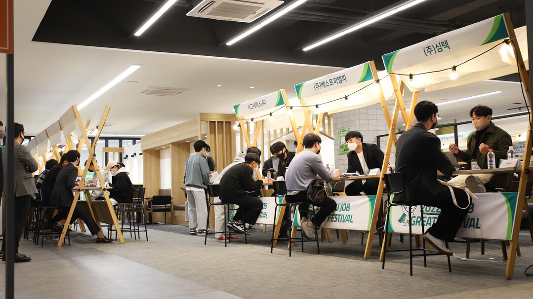 대구대에 따르면 카카오와 신용보증기금, 앨엔에프 등 대기업과 공공기관, 지역 우수기업 등 60개 기업이 참여한 일자리더하기 취업박람회는 ▲학과(전공) 맞춤 현직자 직무컨설팅관 ▲우수 중견/중소/스타트업 기업 초청관 ▲진로/취업 상담관 ▲이벤트관 등으로 구성돼 학생들에게 맞춤형 취업 서비스를 제공했다.