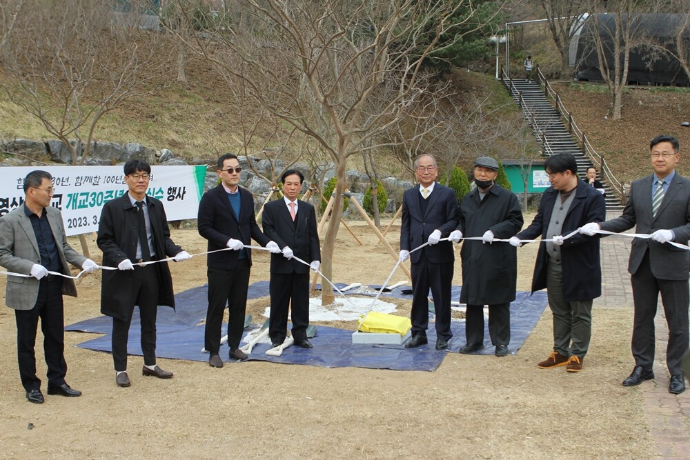기념식 후 유재원 총장과 최석원 이사장, 이진 전 학장 등 내외빈 10명은 교목인 배롱나무(백일홍)를 심어 대학의 건학이념인 ‘실용주의정신’, ‘전인교육’을 되새겼다.