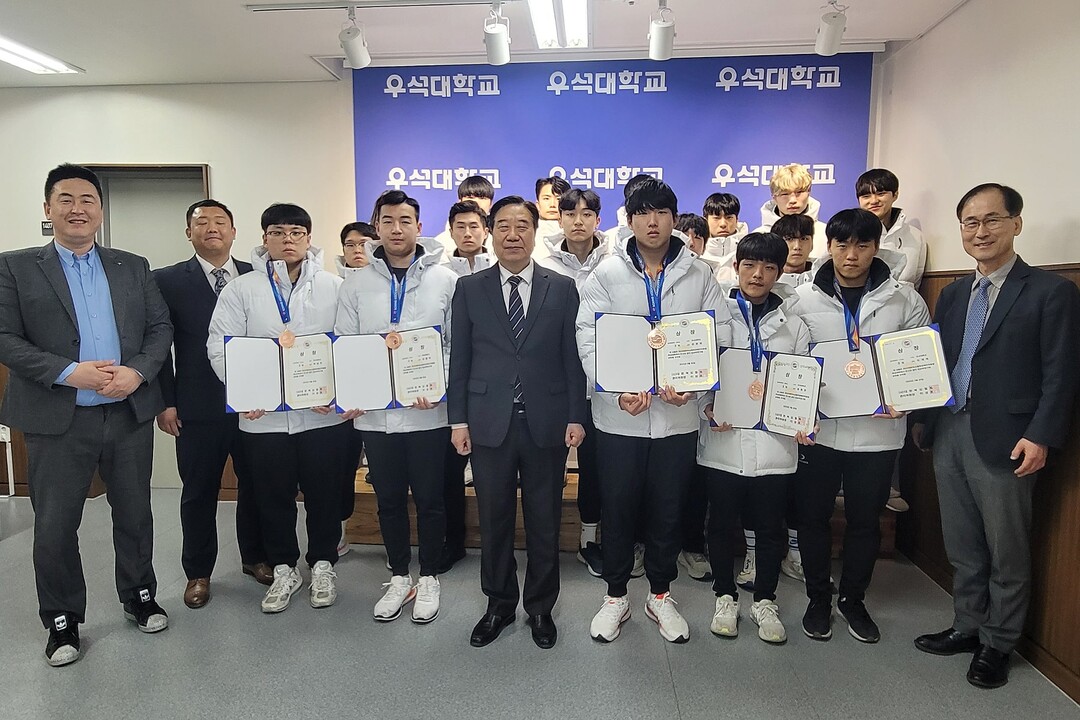 22일 우석대에 따르면 지난 11~20일 김해 문화체육관에 열린 대회에서 우석대 황동현, 오재욱, 한완희, 김동희, 박성우 학생은 각각 동매달을 목에 걸었다.