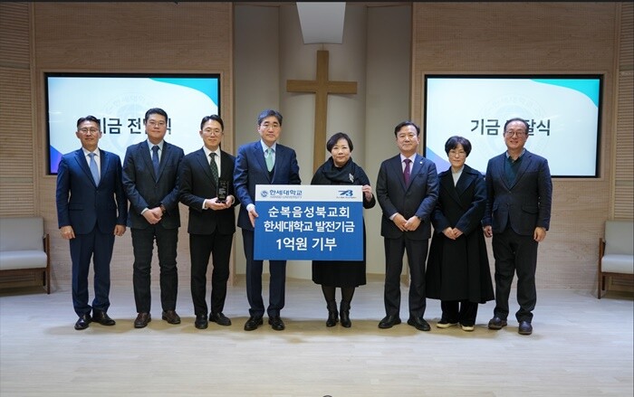 한세대가 20일 순복음성북교회 ‘발전기금 전달식’을 본관 예루살렘홀에서 진행했다. 사진=한세대 제공 |