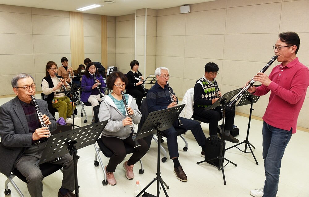 순천향대 평생교육원이 지난 학기 개설한 ‘더욱 멋진 클라리넷’ 강좌 수강생들이 악기 연주 연습에 몰두하고 있다. 사진=순천향대 제공 |