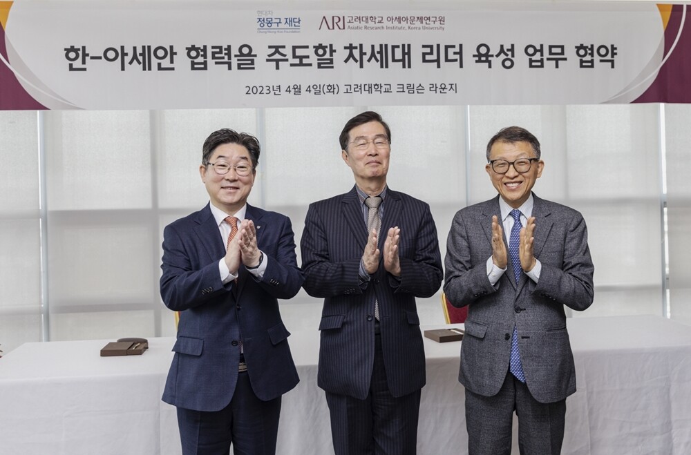 CMK 아세안 스쿨의 설립을 위한 고려대 아세아문제연구원과 현대차 정몽구 재단 간의 협약식이 4일 고려대에서 열렸다.