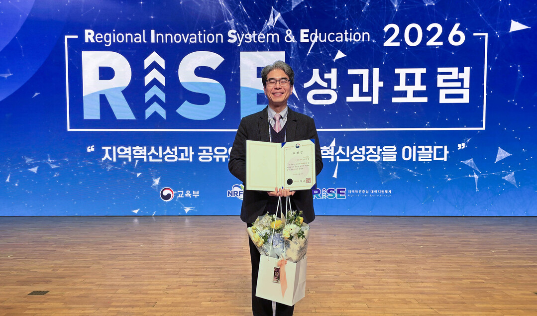 [대학저널 이선용 기자] 경남대학교 RISE사업단 이준경 부단장(공과대학장)은 지난 1월 20일 오후 2시 부산 벡스코 오리토리움에서 열린 ‘2026년 전국 대학 RISE사업단 동계 성과포럼’에서 대학혁신 및 지역발전 지원 유공자로 선정돼 교육부 장관 표창을 받았다.