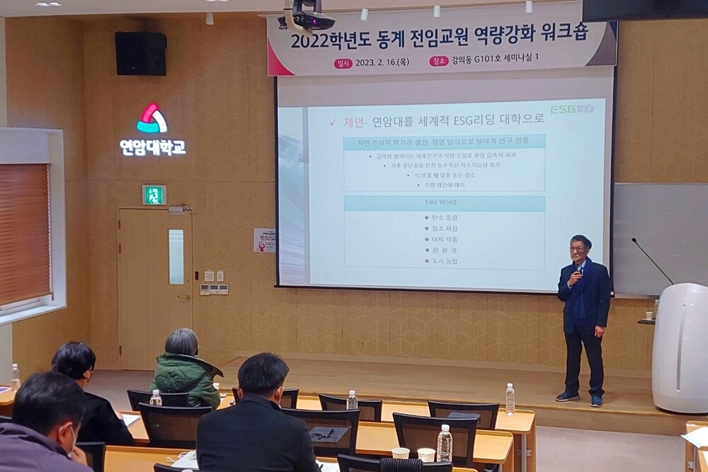 [대학저널 온종림 기자] 연암대학교는 최근 2022학년도 동계 전임교원 역량강화 워크숍에서 홍남석 한국ESG경영원장을 초청해 ‘ESG경영’ 특강을 했다고 22일 밝혔다.