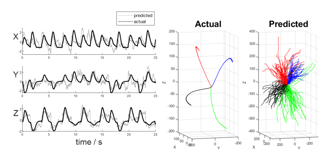 또한 대뇌 피질 신호 디코딩을 통해 환자가 상상한 팔 뻗기 방향을 최대 80% 이상의 정확도로 예측할 수 있음을 확인했다.