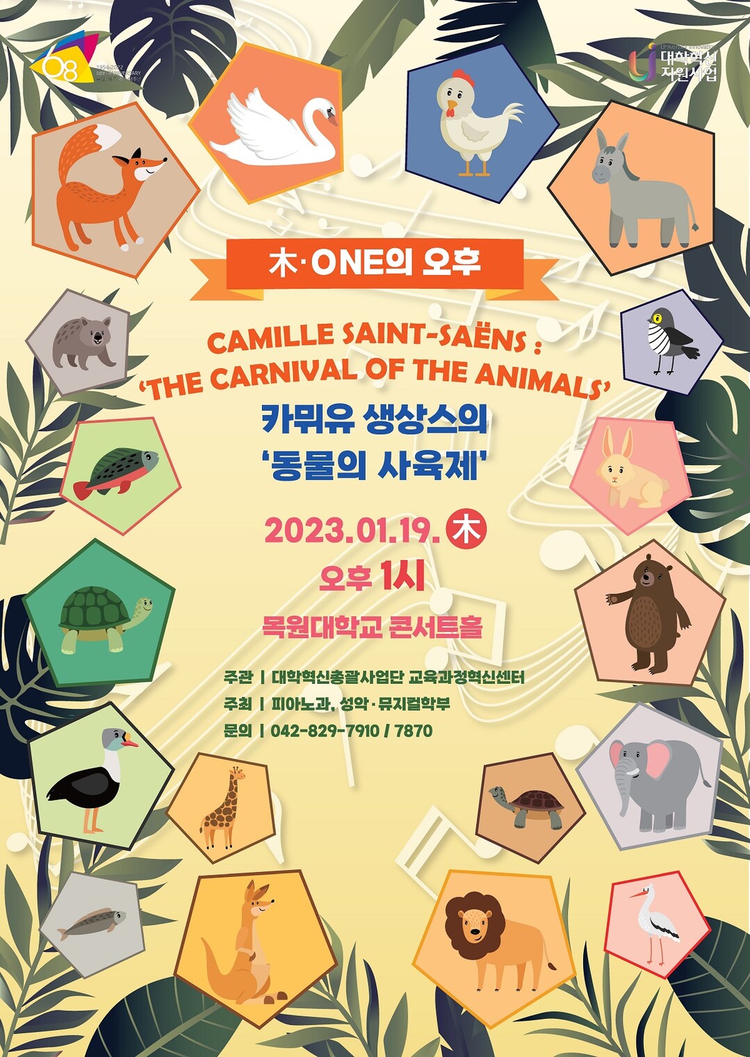 11일 목원대에 따르면 이 대학 피아노과와 성악·뮤지컬학부는 19일 오후 1시 목원대 콘서트홀에서 동물의 사육제 공연을 진행한다.