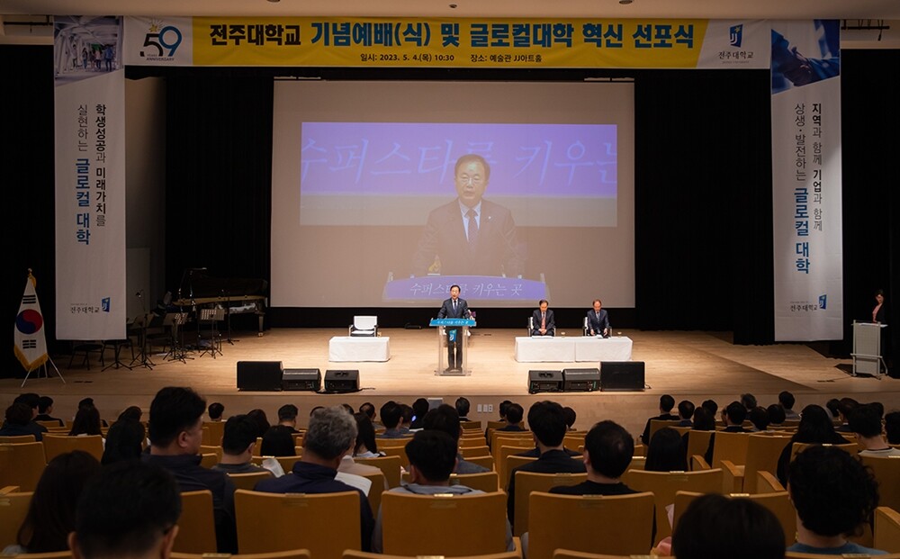 선포식에서는 학교법인 신동아학원 이사장과 전주대 총장, 총동문회장, 교수회장, 직원회장, 학생회장이 공동으로 글로컬대학 혁신 선언문을 낭독하며 전주대의 글로컬대학 30 추진 의지를 표명했다.