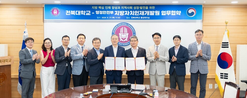 [대학저널 온종림 기자] 전북대학교가 핵심 인재 양성을 위한 교육과 지역사회 성장 발전을 위해 행정안전부 지방자치인재개발원과 27일 협약을 체결했다.