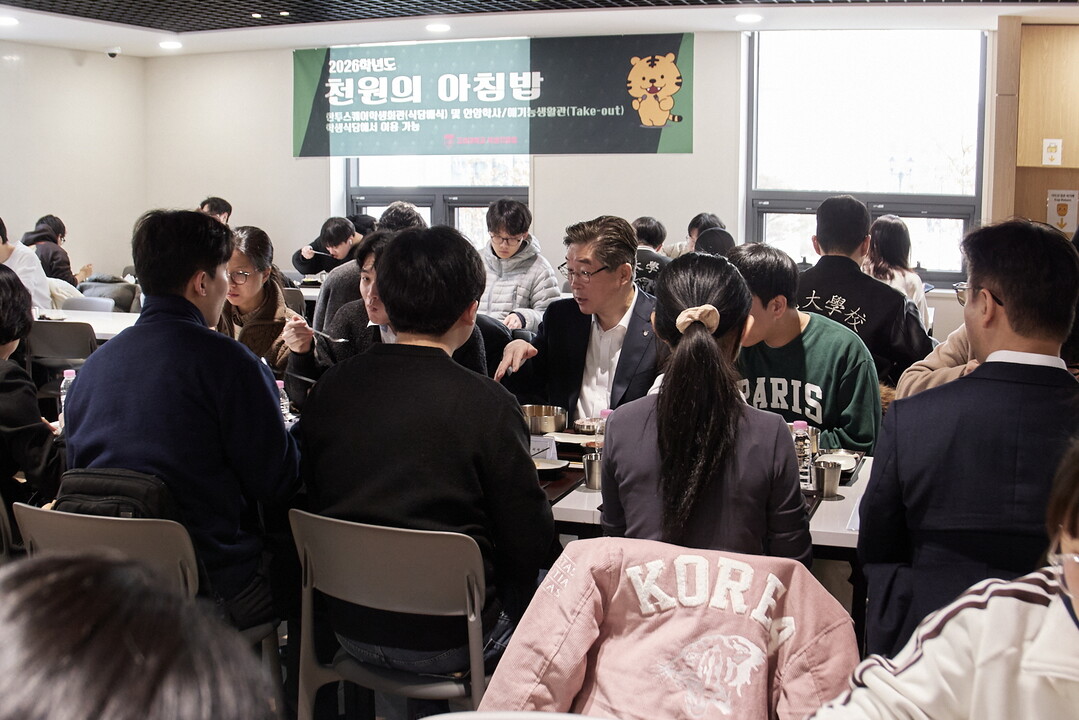 이날 행사는 총장과 학생대표들이 함께 아침 식사를 하며 사업 운영 현황을 공유하고 현장의 목소리를 듣기 위해 마련됐다. 김동원 총장은 “최근 고물가 상황으로 학생들의 식비 부담이 커지고 있는 가운데, 현장에서 직접 의견을 들을 수 있어 뜻깊다”며 “천원의 아침밥 사업을 통해 학생들이 건강하게 아침 식사를 챙기고 학업에 더욱 정진할 수 있도록 아낌없이 지원하겠다”고 말했다.