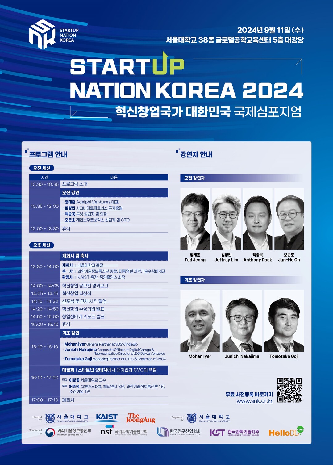혁신창업국가 대한민국 국제심포지엄 2024 행사 포스터.
