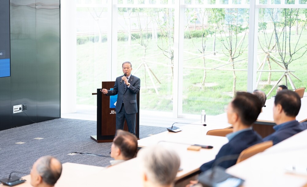 [대학저널 온종림 기자] 양오봉 전북대 총장이 24일 정읍 전북은행 연수원에서 열린 JB미래포럼에서 전북 출신 강소기업 대표 등을 대상으로 지역발전을 위한 전북대의 역할과 혁신방안 등에 대해 설명했다.