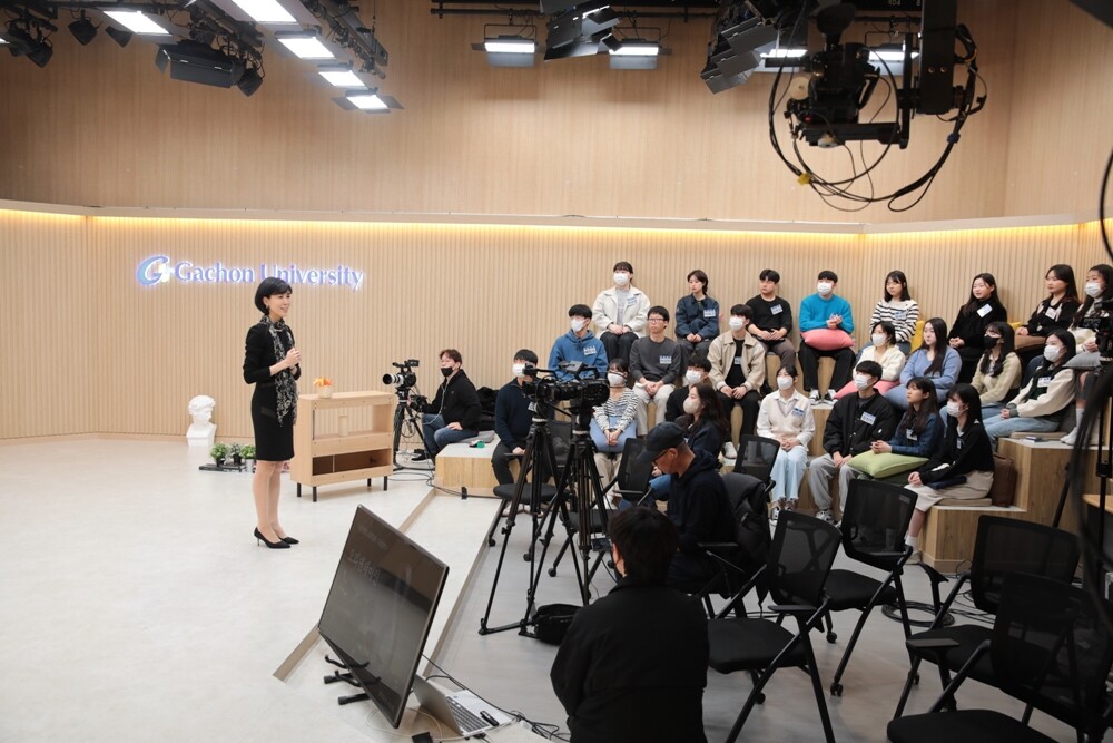 가천대가 지성학 스튜디오에서 강의 리허설을 하고 있다. 사진=가천대 제공 |