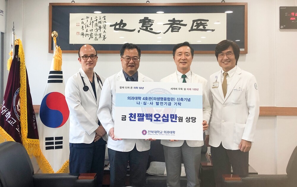 이번 현물 기증은 의과대학 4호관(의생명융합관) 신축을 기념해 나·심·사 교수들이 의기투합해 십시일반 기금을 마련해 이뤄진 것이다.