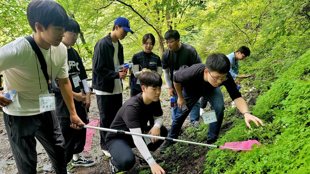 국립안동대 학생들이 수목의 병해충 진단 실습 교육을 받는 모습. 사진=국립안동대 제공 |