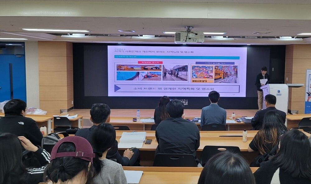 양주시 도시재생대학 청년기획단 학생들이 사업계획을 발표하고 있다. 사진=경동대 제공 |