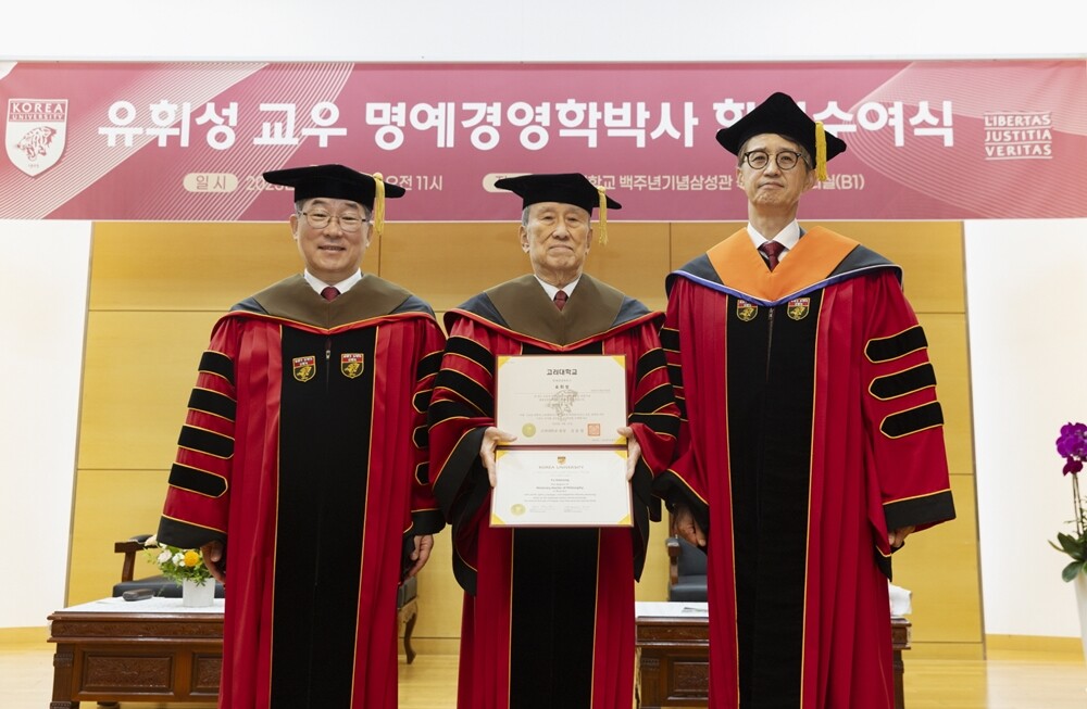 [대학저널 온종림 기자] 고려대학교는 21일 고려대 백주년기념삼성관 국제원격회의실에서 유휘성 전 조흥건설 대표(상학 58)에게 명예경영학박사 학위를 수여했다.