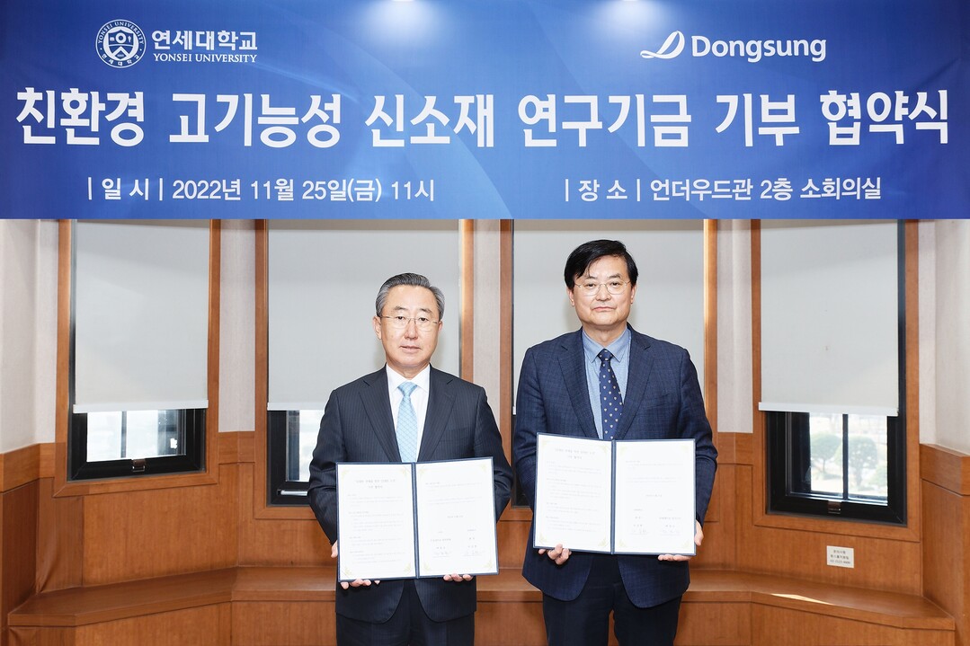 [대학저널 온종림 기자]동성케미컬이 연세대학교에 친환경 고기능 신소재 연구기금 20억 원 기부를 약정했다.