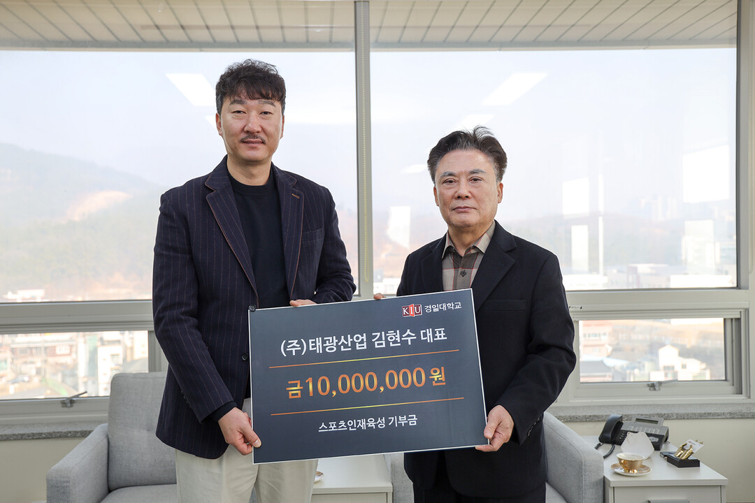 [대학저널 김진수 기자] 경일대학교는 태광산업 김현수 대표가 스포츠인재육성기부금으로 1000만원을 기부했다고 8일 밝혔다.