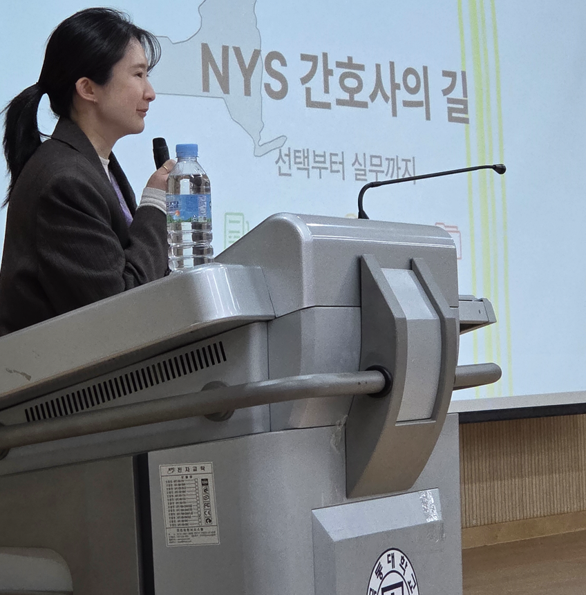 또한 미국 병원의 근무 환경과 복지 제도, 신규 간호사 교육 시스템 등 실제 해외 임상 현장의 사례를 공유하며 학생들의 이해를 도왔다.